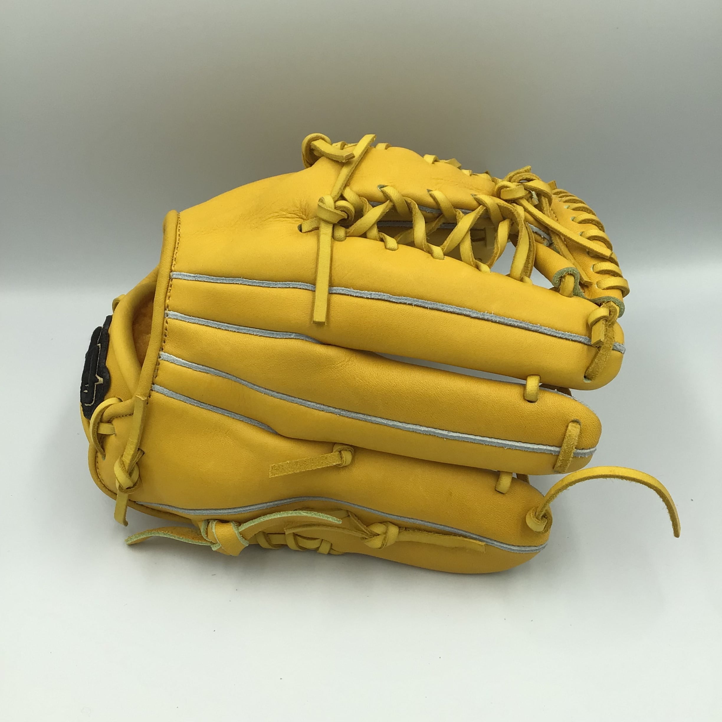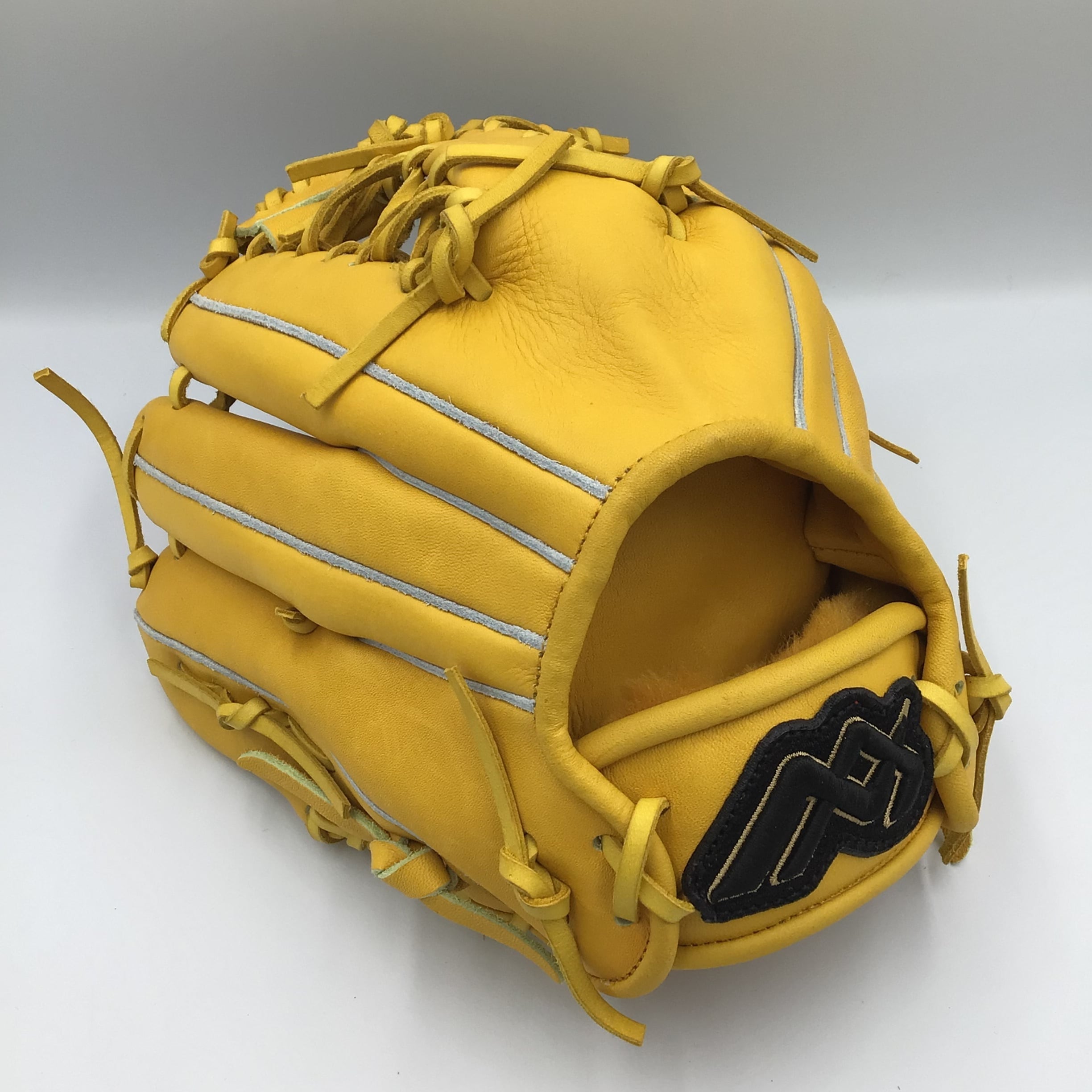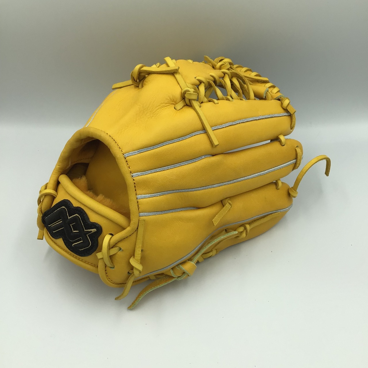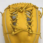 小学生高学年向け、両手投げグラブです。革 ステアの柔らかめイエローを使用しています。
