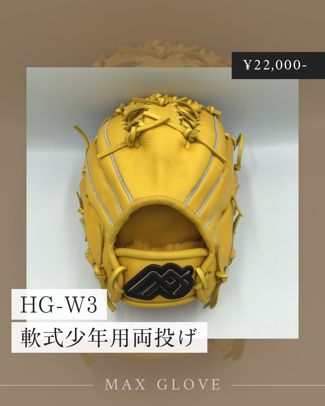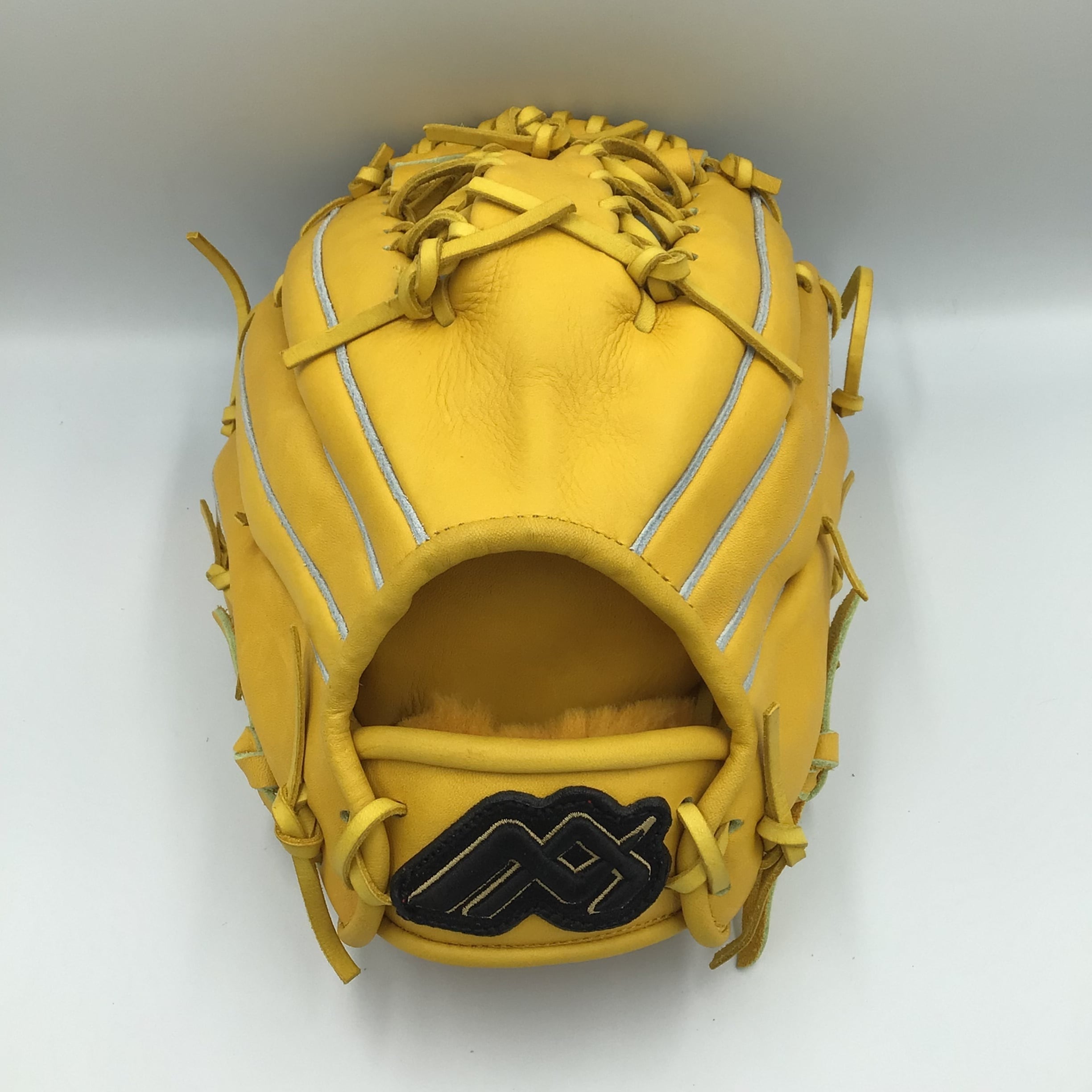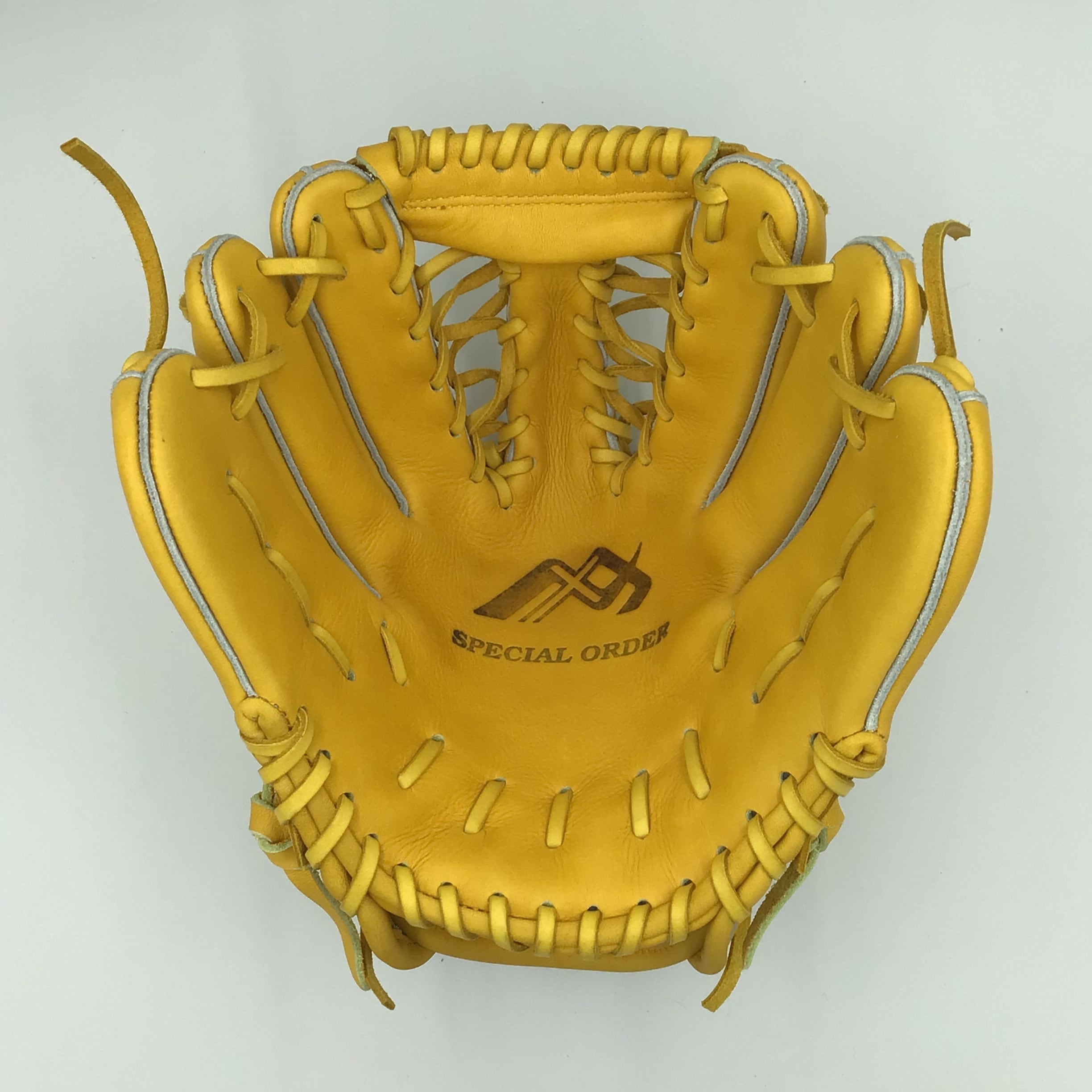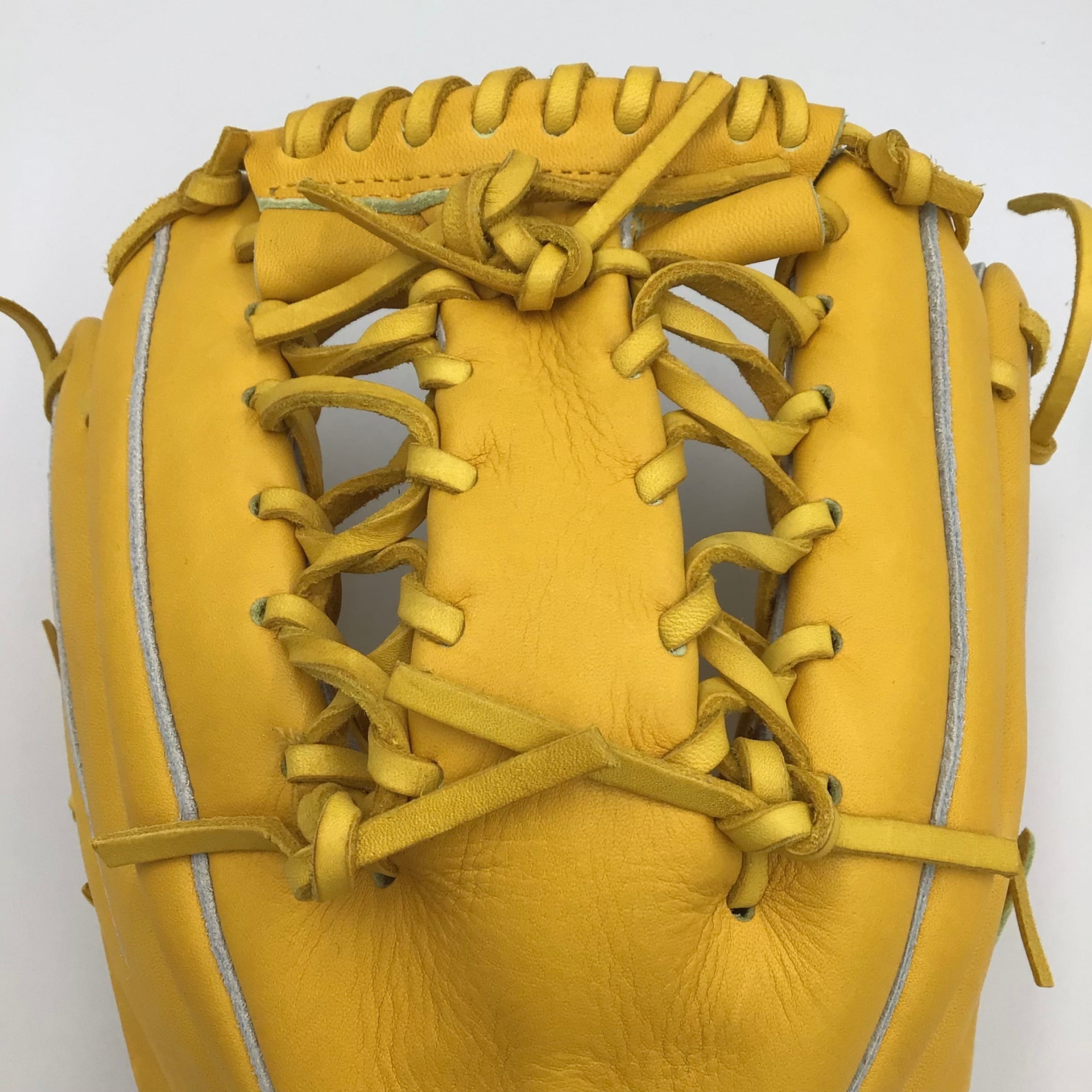 小学生高学年向け、両手投げグラブです。革 ステアの柔らかめイエローを使用しています。