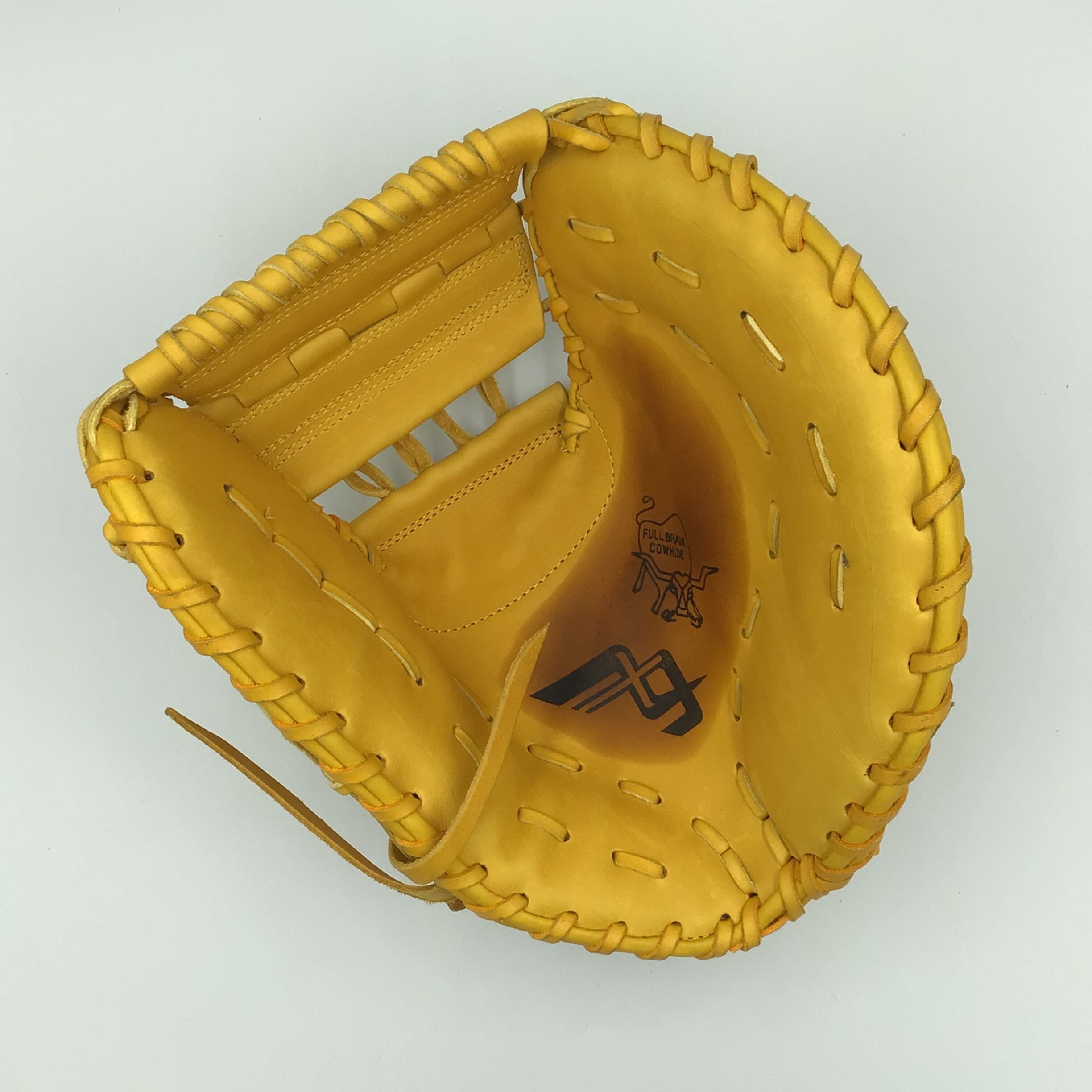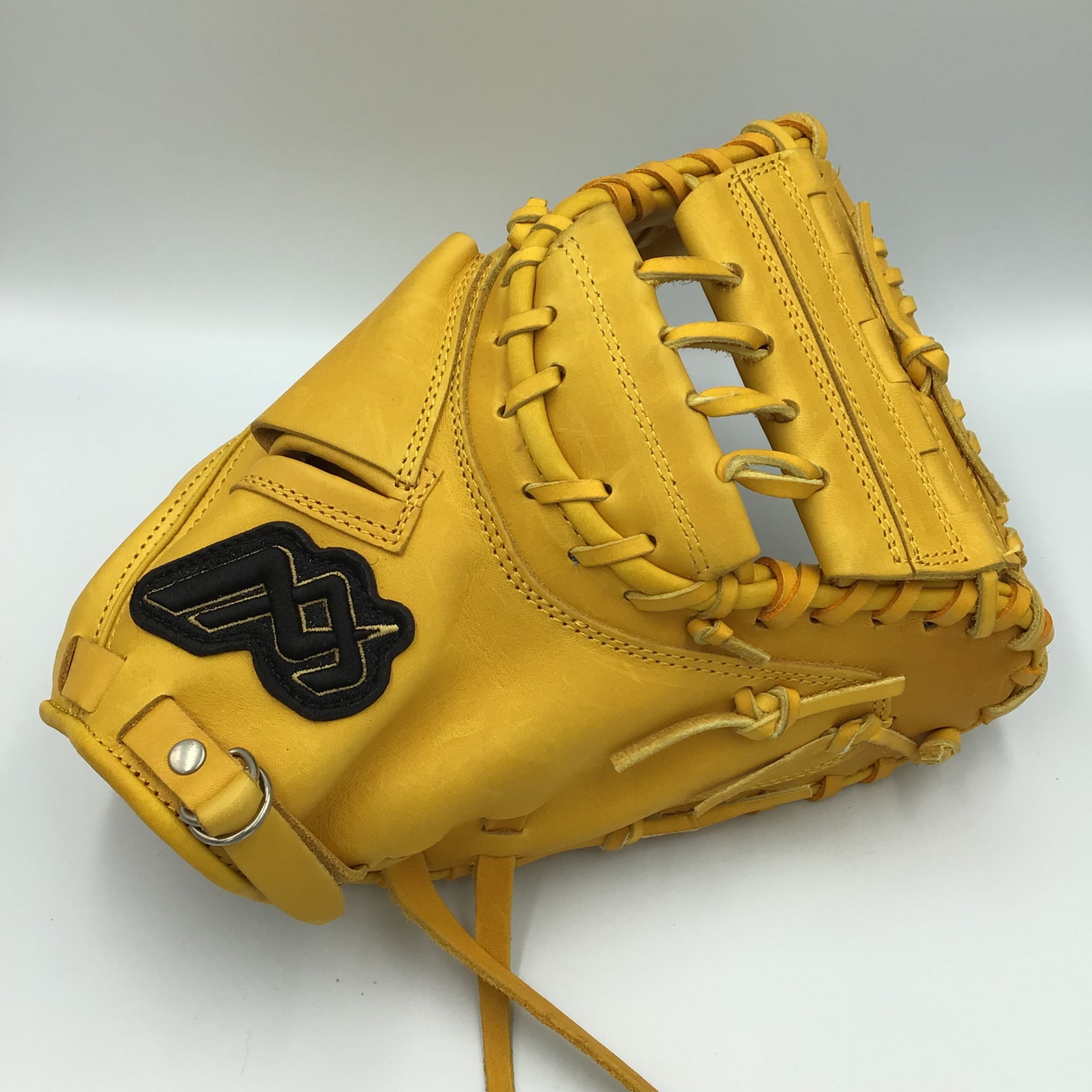 ソフトボール一塁・捕手用です。通常のファーストミットとは違い、親指・小指部の芯が厚くなってます。がっしりした感じが好きな方にお勧めです。革 ステアのナチュラル ヒラ裏 ブラックです。 ラベル No,9